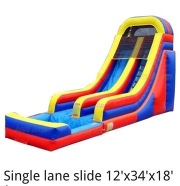 This slide is perfect for outdoor events of all kinds, our arch slide with pool is sure to be a hit! This model features a single-lane slide and access ramp. The slide brings participants down to a splash pool at the base. The arched top adds visual interest, and the bright colors are sure to attract young ones for fun in the sun. This slide is a great addition to bring excitement to summer activities and a perfect way to cool down!!!
