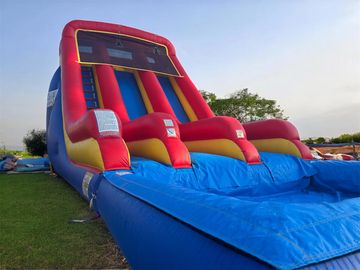The double slides on this unit makes it more fun for the kids. The side-mounted access ladder makes it a snap to get to the top. Like all of our commercial-grade inflatable products, durable vinyl material in shades of blue, yellow, and red. The arched top is protected by a mesh screen where a hose connects to create a waterfall of fun and excitement! Both lanes lead to a pool at the bottom to end each ride with a splash!!
